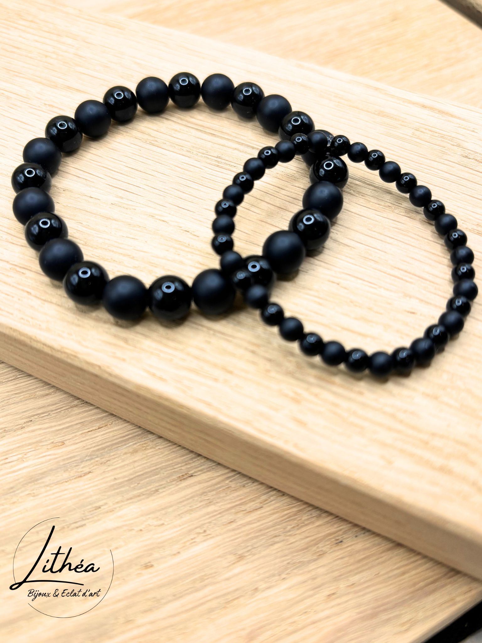 🌑 Les perles mates apportent sobriété et élégance, tandis que les perles brillantes révèlent l’énergie et la profondeur de l’onyx.