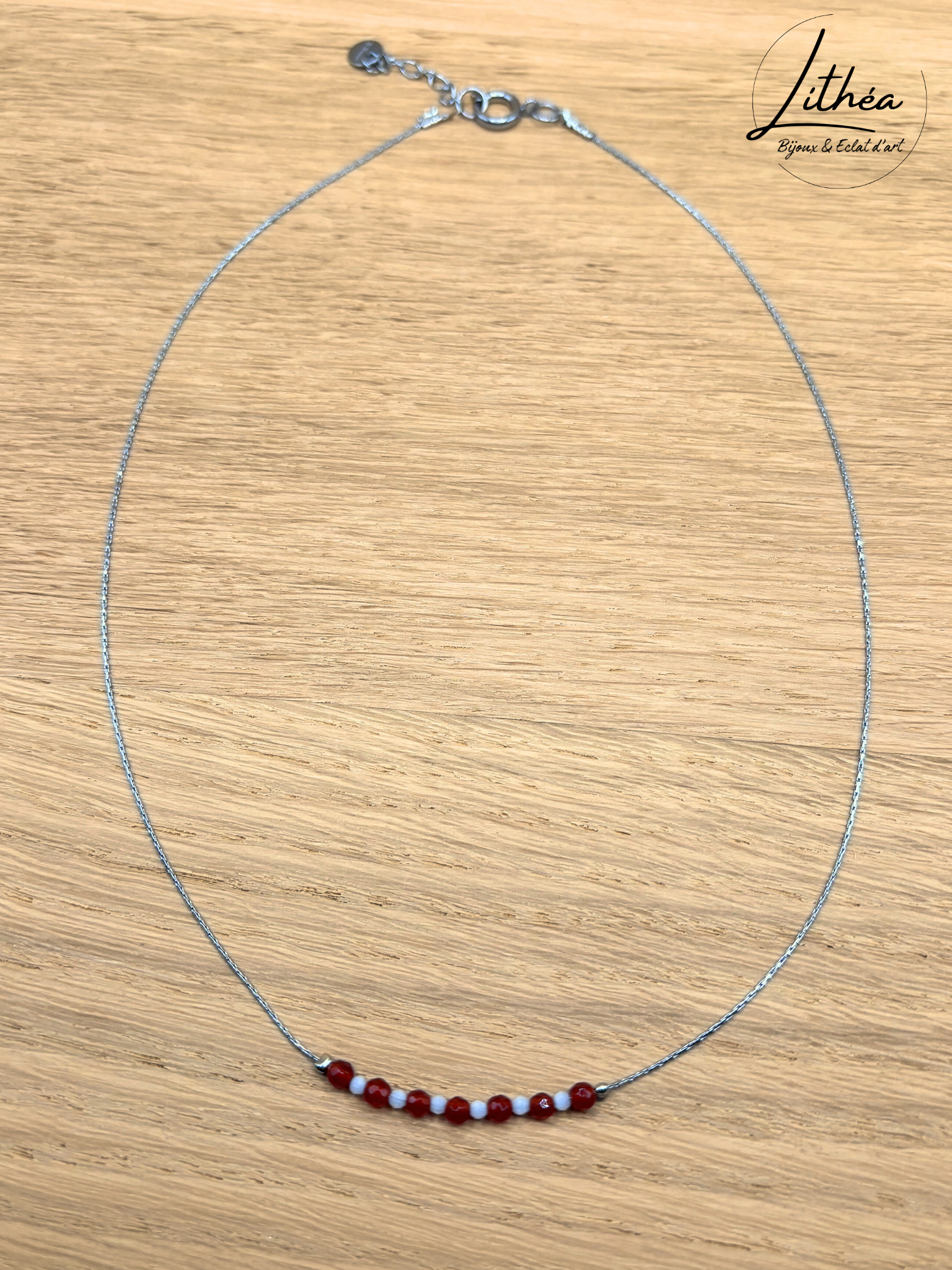 Le collier Elisa séduit par sa finesse intemporelle et son éclat argenté délicat. Sa chaîne serpentine argentée très fine est sublimée par de perles facettées de 3 mm, rehaussées d’intercalaires en perles blanches qui apportent une touche de pureté et d’élégance.
